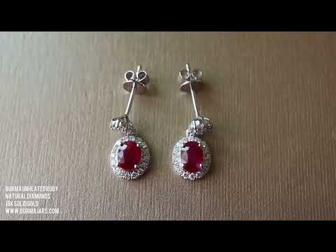 Total 1.62ct Burma unheated Ruby and Natural diamond Dangle Drop Earring
